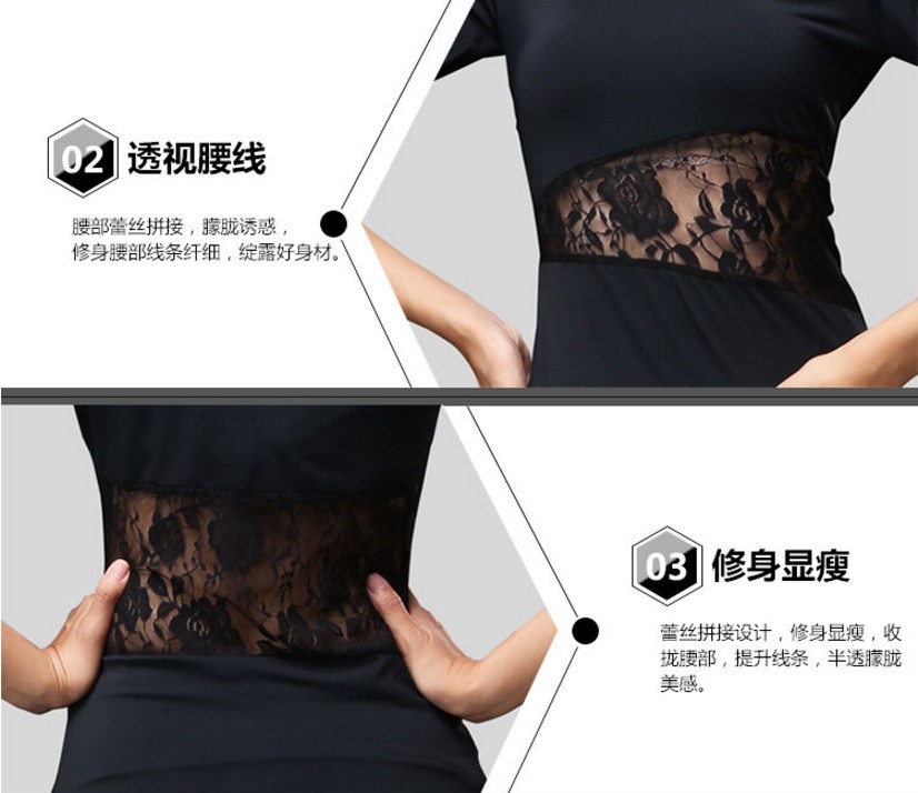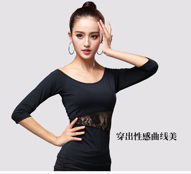 2019 new Latin dance blouses 7 split sleeves U collar blouses yoga blouses Practicing Costume Lace splicing blouses