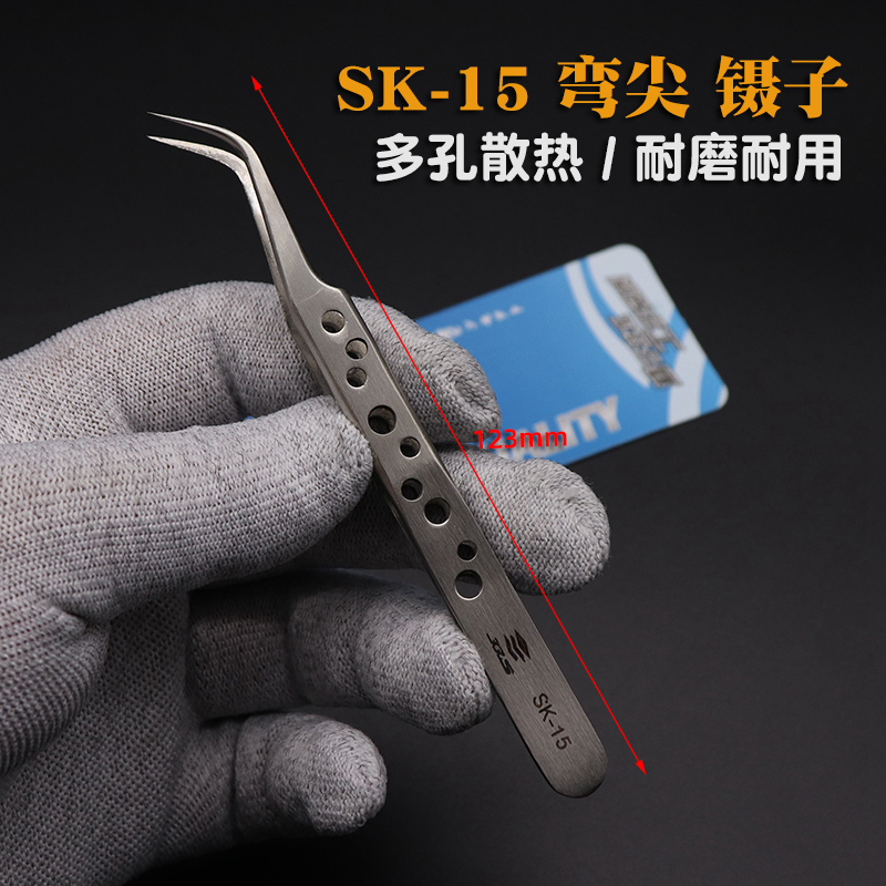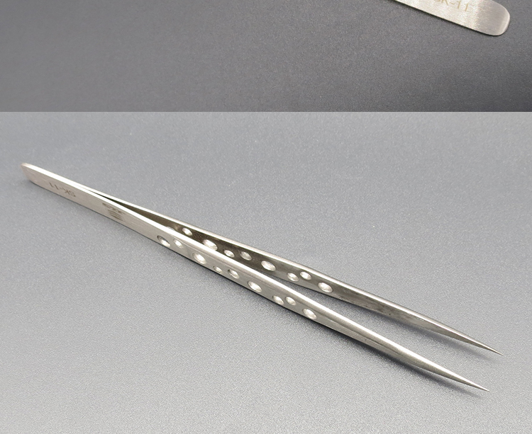 Non-slip with hole durable straight head SK-11 precision thickened stainless steel repair tweezers anti-static non-magnetic straight tip