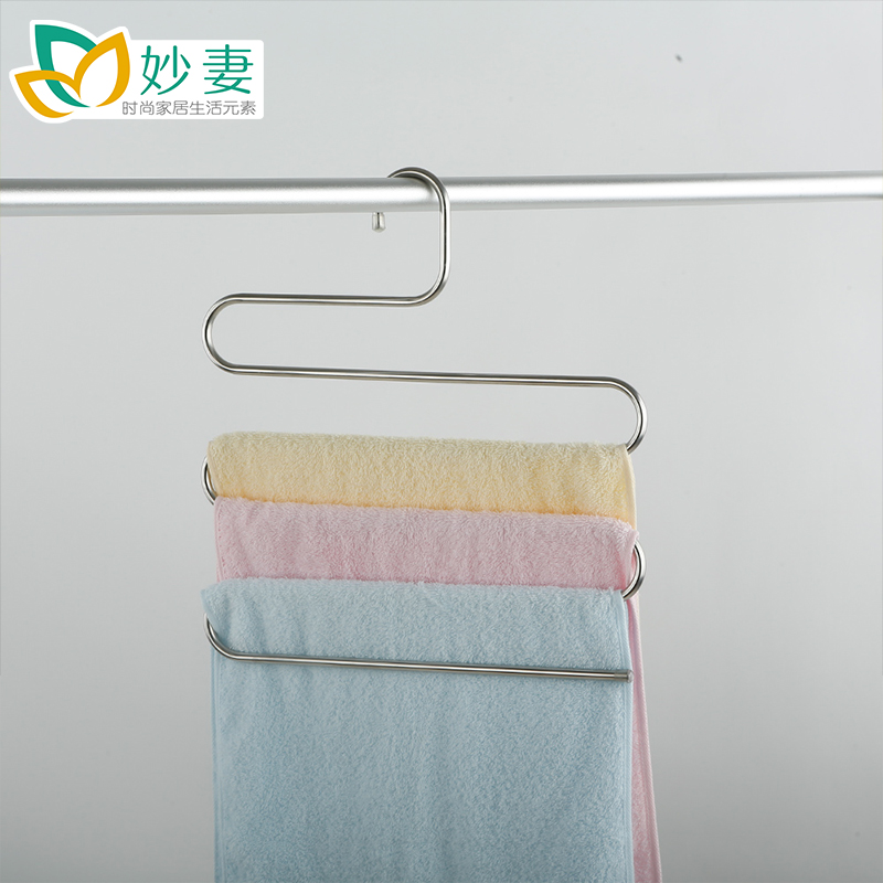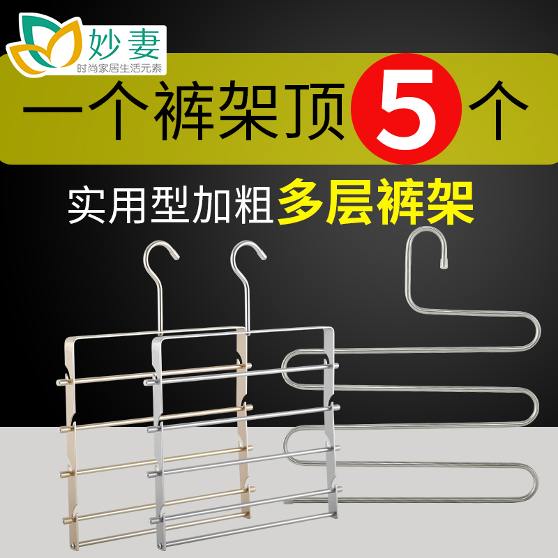 Wonderful Wife Stainless Steel Multilayer Pants Rack Magic S Type Multifunction Hanging Pants Towel Hanger Wardrobe Wardrobe containing shelf Non-slip