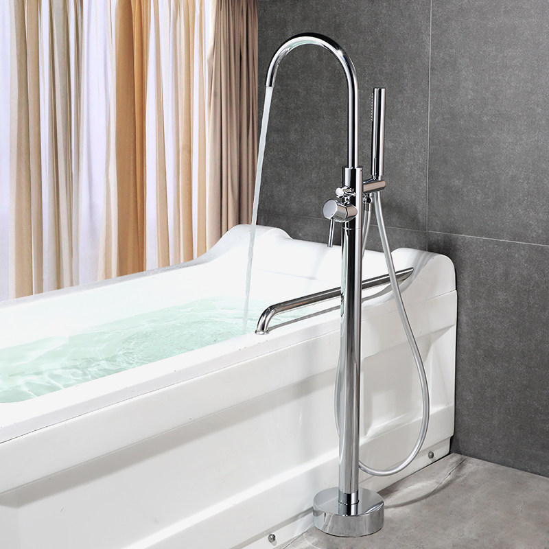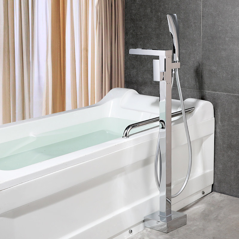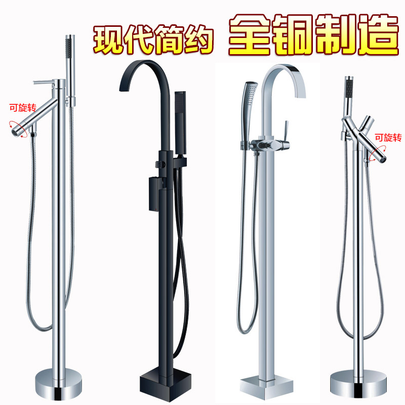 Kassee full copper hot and cold floor bathtub tap independent type cylinder side tap bathroom wood barrel floor shower head suit