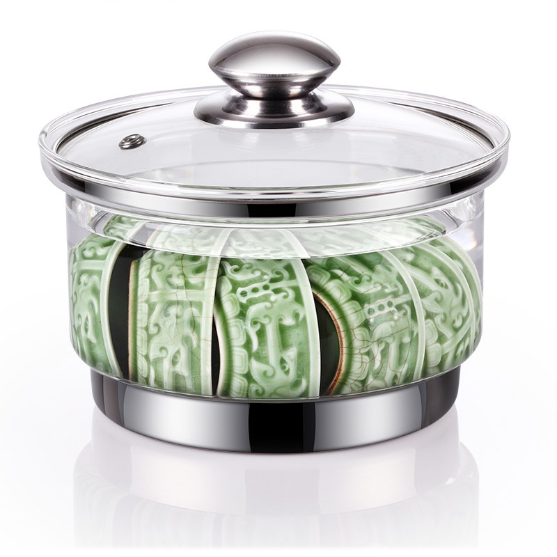 Double ear pot stainless steel sterilizer induction cooker black crystal furnace universal teacup tea set accessories glass lid pan