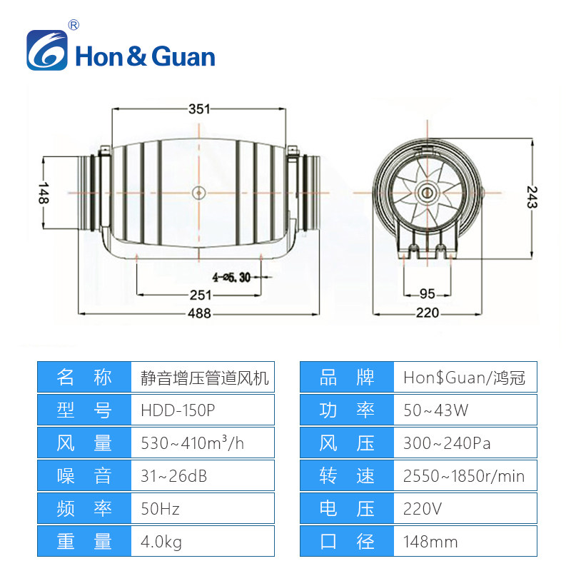 Hongguan Piping Ventilator 150P Living-room Silent Exhaust Fan Domestic Bedroom Exhaust Fan Powerful Ventilator 6 Inch