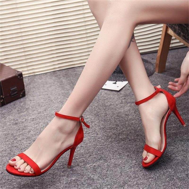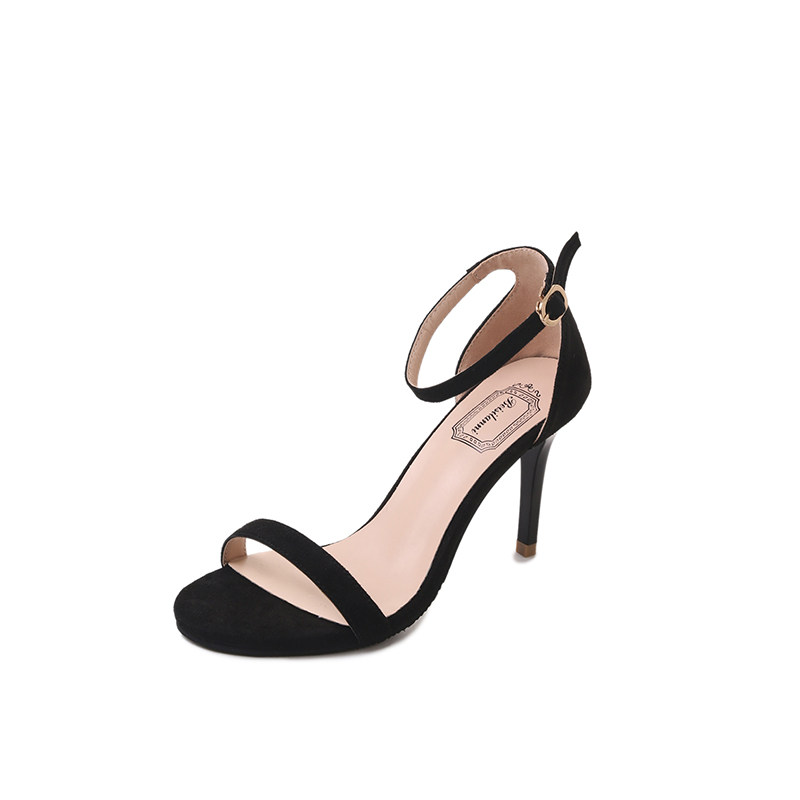 Shoes women's 2022 new buckle with thin heel women's sandals women's black high heels suede Joker open toe women's shoes