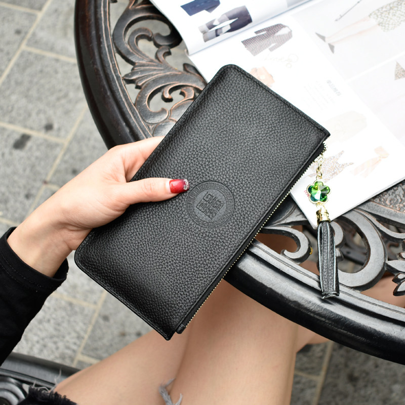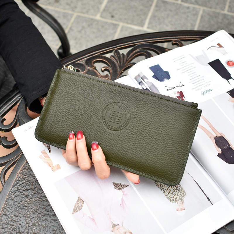 2021 New zipper leather wallet women ultra-thin long version of large capacity cowhide mobile phone wallet simple hand bag tide