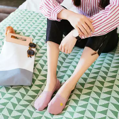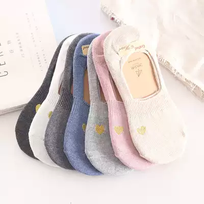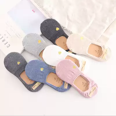 Invisible socks female cotton shallow mouth love embroidery invisible socks cute socks silicone non-slip low-top Korean Japanese socks