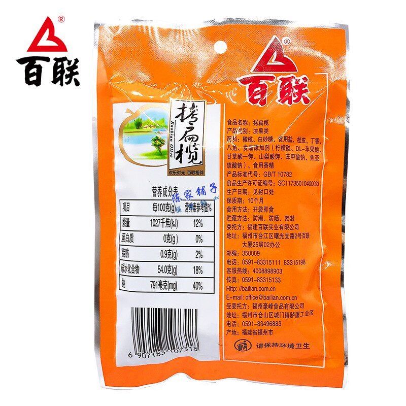 Fujian specialty Fuzhou snack Bailian copy flat olive 120g roasted flat olive fruit dried marinated olive candied fruit