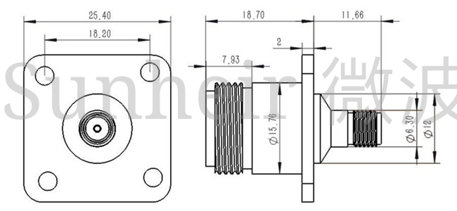 N to SMA Four-hole flange Stainless steel adapter Instrument panel NJ SMA Sunheir Microwave