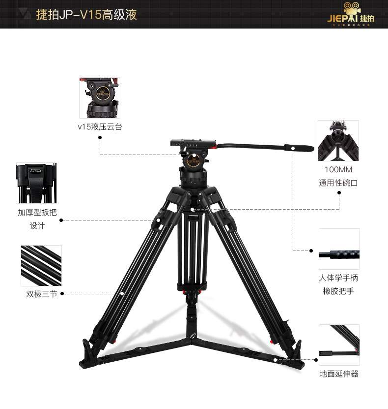 Quick shot JPv15L broadcast grade hydraulic head tripod set aluminum alloy set quick shot v15L aluminum alloy