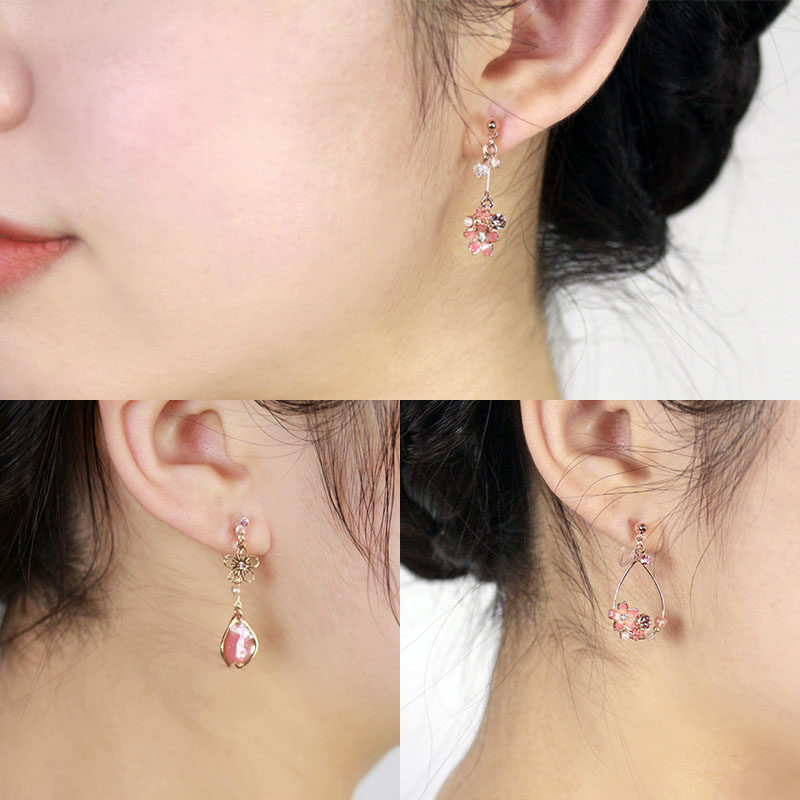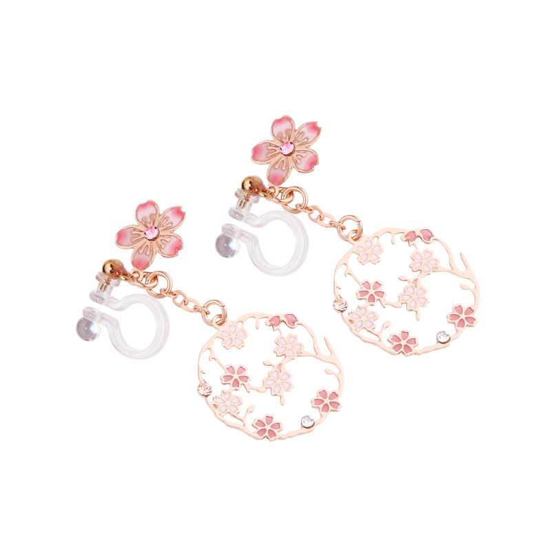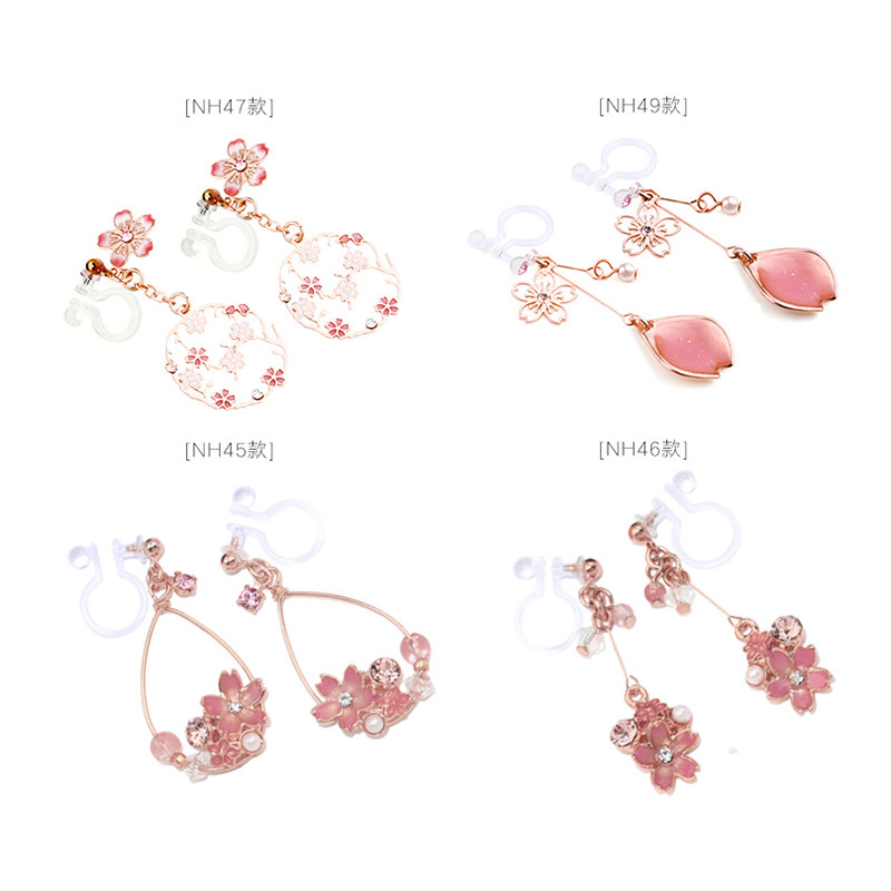 OSEWAYA ear clip girl ins no ear hole long version super fairy earrings cherry blossom earrings small fresh earrings ear bone nails