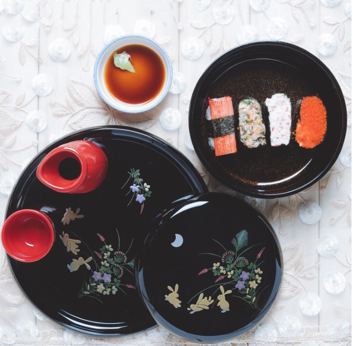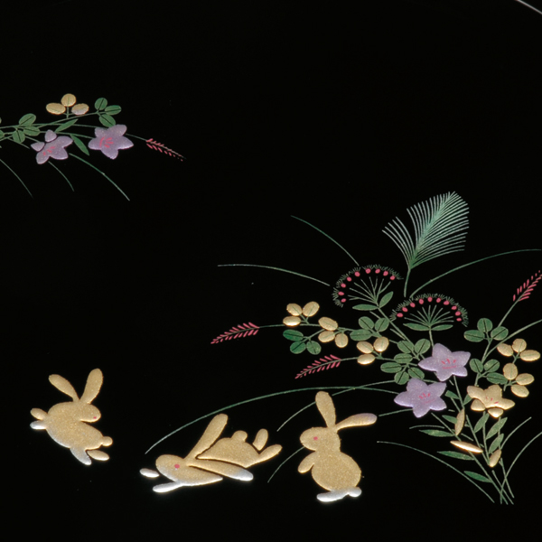 Japanese Sakura Flowers and Rabbit Resin Lacquerware Round Small Rectangle Large Tea Set Tray Tea Tray