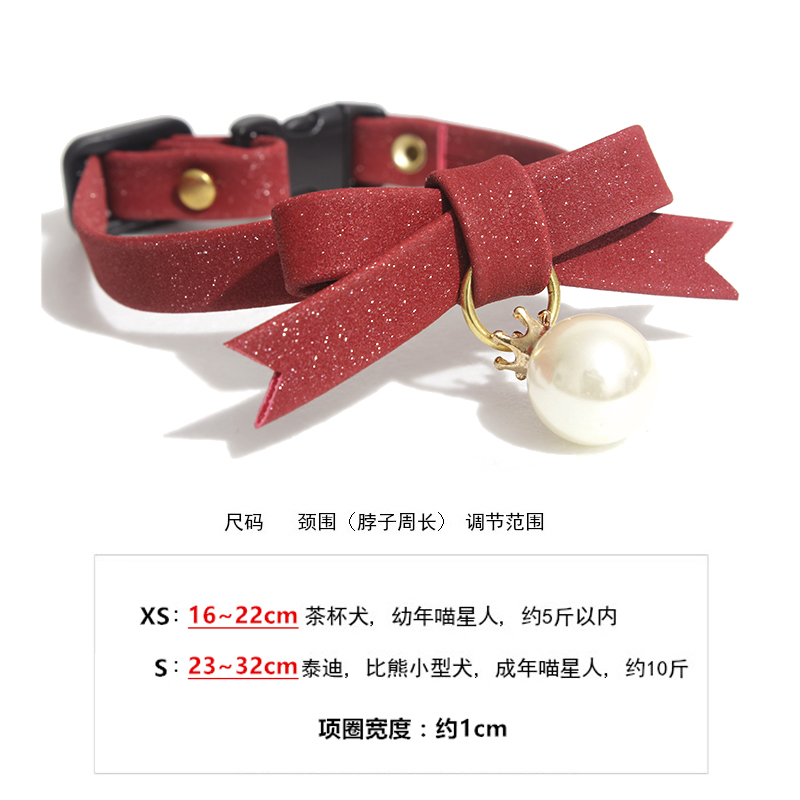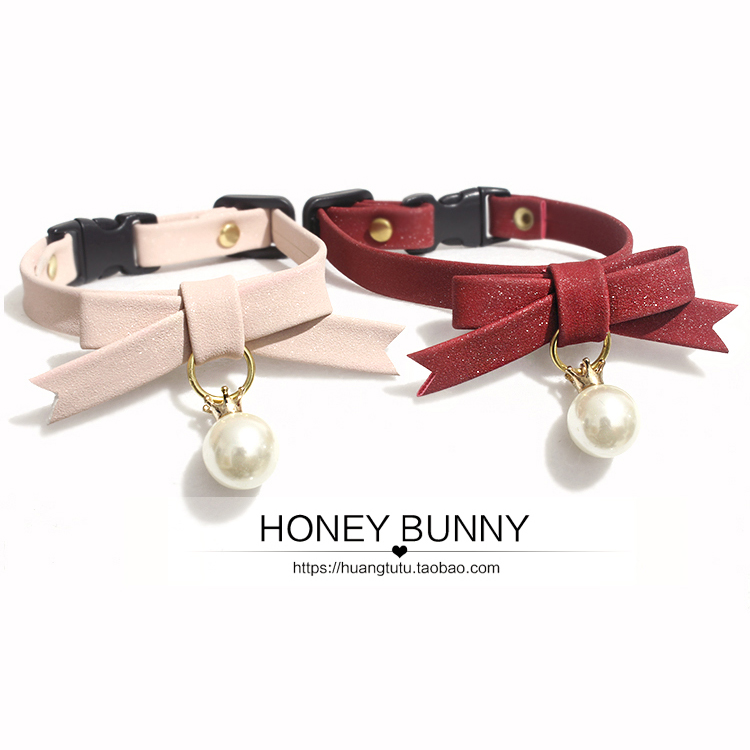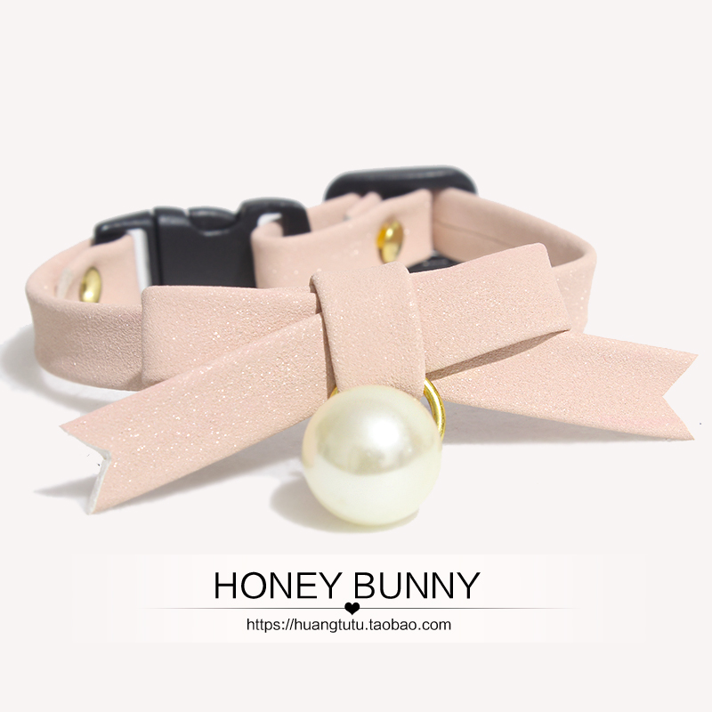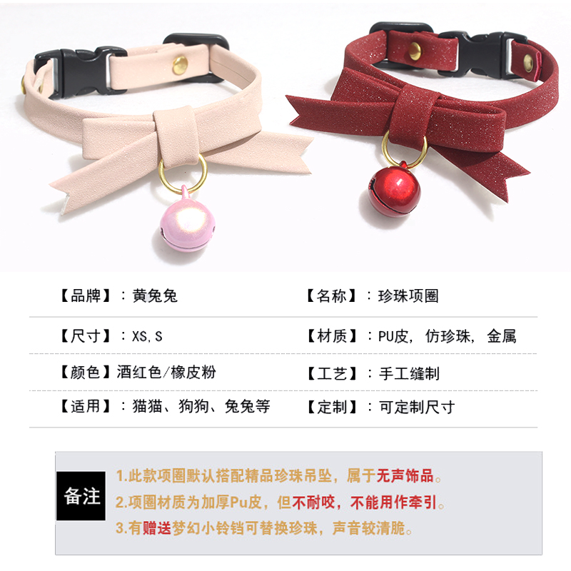 Safe button pet jewelry cat bell dog collar necklace shining pearl butterfly bow