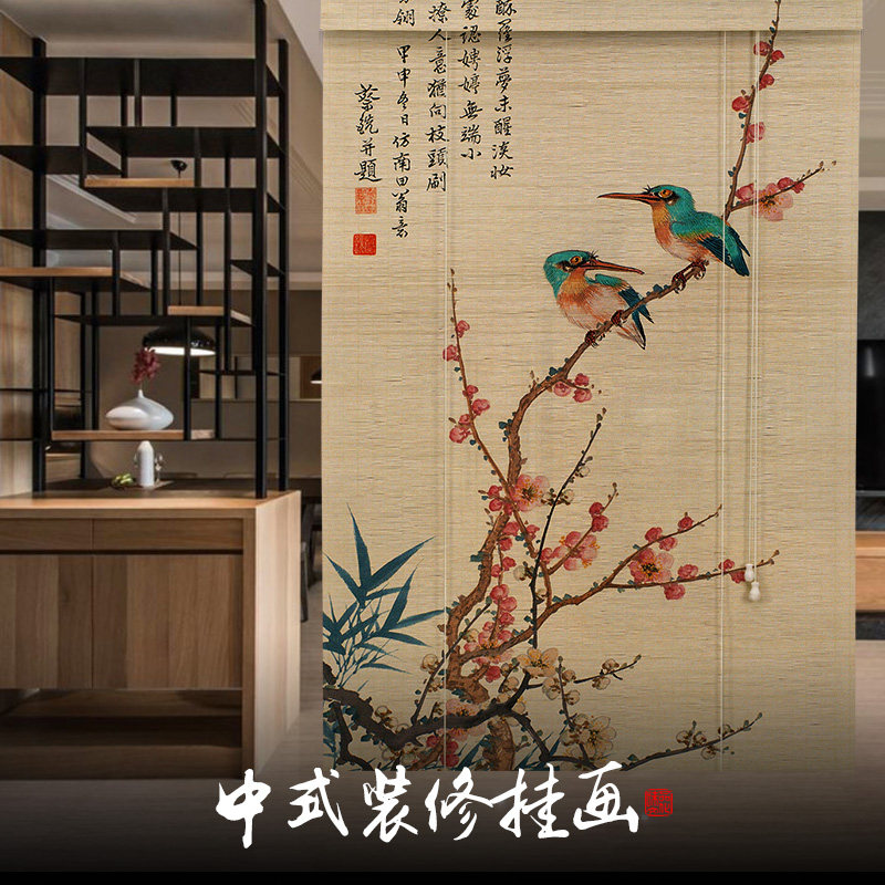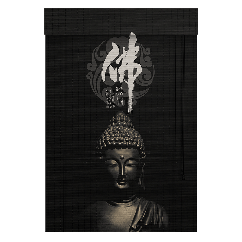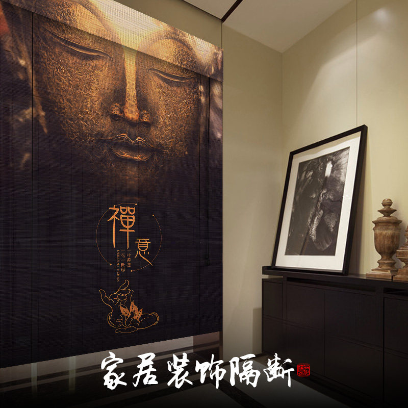 Zen retro bamboo curtain curtain roller shutter lifting bamboo curtain Buddha Hall partition decorative curtain printed bamboo curtain hanging painting