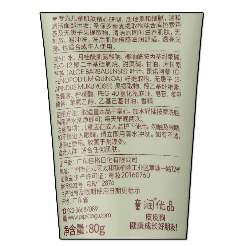 Pipi dog children Aloe Vera Fresh Wash Face Milk 80g male girls Facial Shampoo moisturizing moisturizing natural mild
