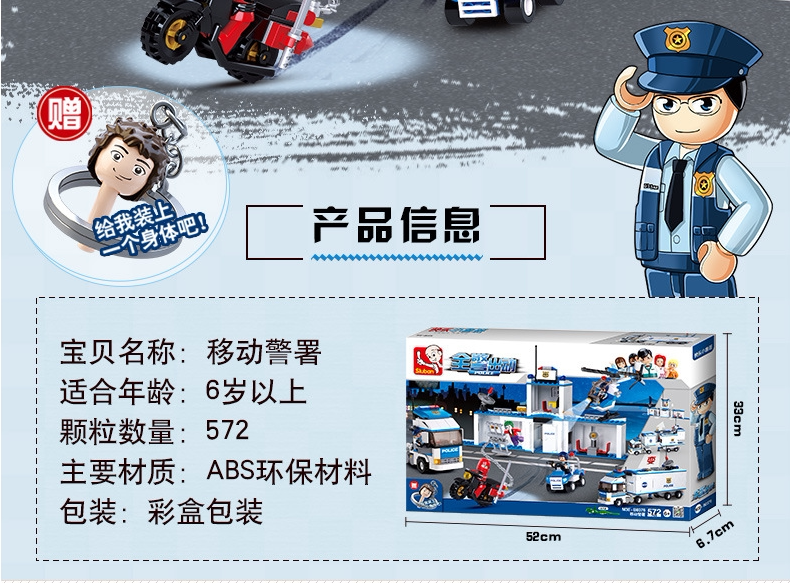 Small Ruban spelled and assembled building blocks toy mobile police police police car B0376 Puzzle Boy Toy Gift