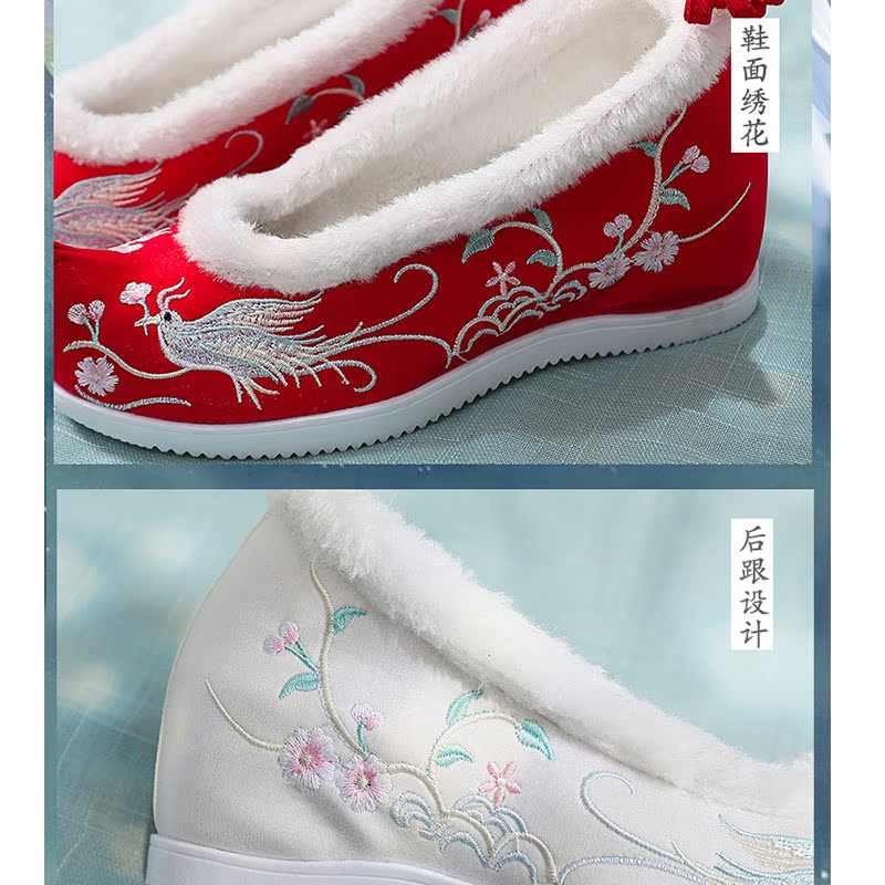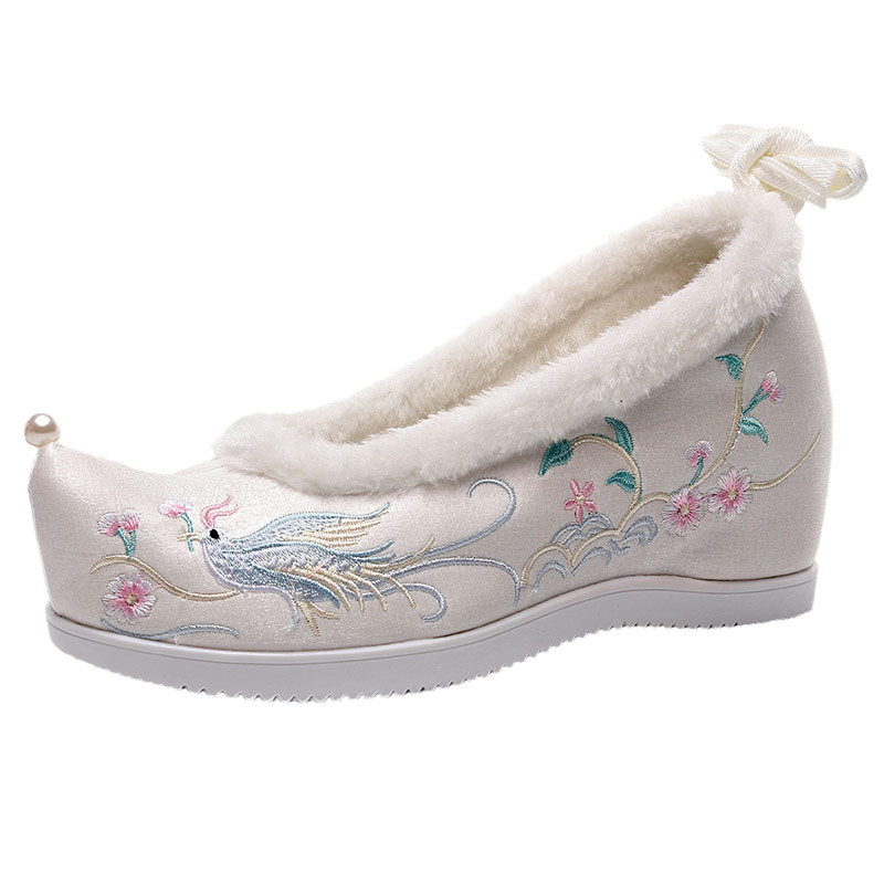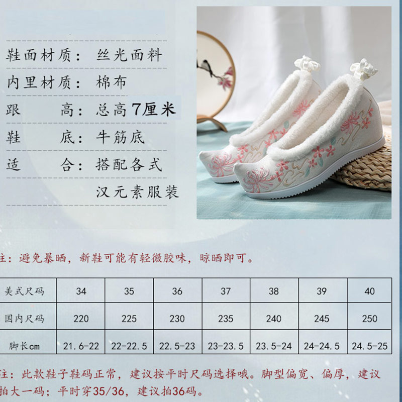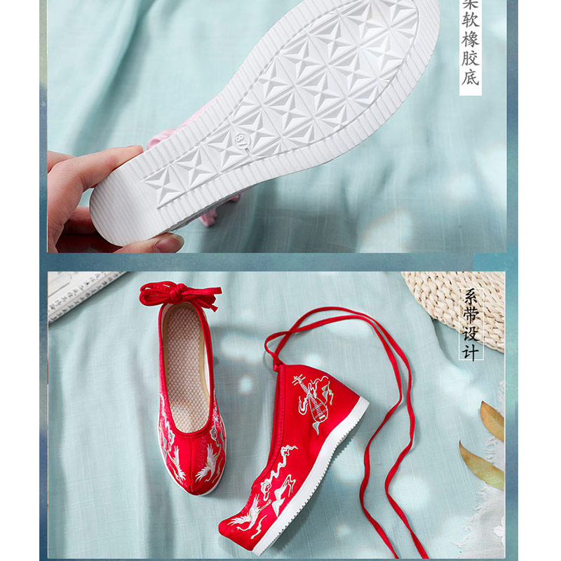 Inner heightening ancient costume Hanfu shoes women's wedge heels ancient style warped head bow shoes high heels retro ethnic style elegant embroidered shoes