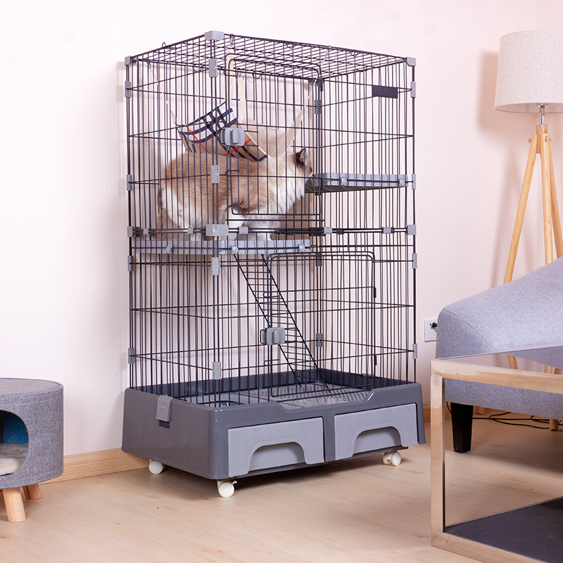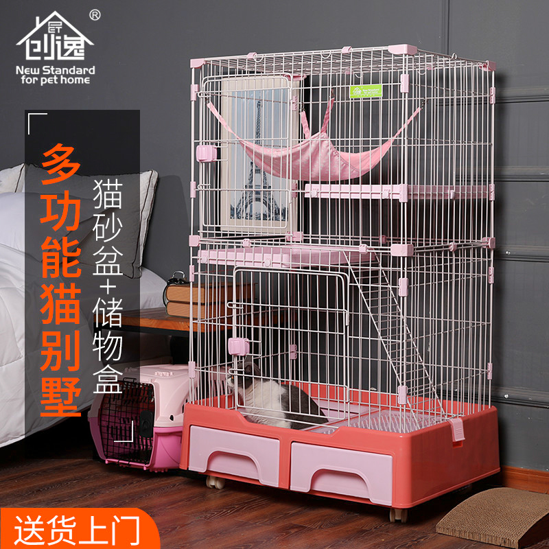 Luxury Cat Cage Cat Villa With Toilet Cat Litter Basin Integrated Drawer Triple size Home Indoor Creative Cat House