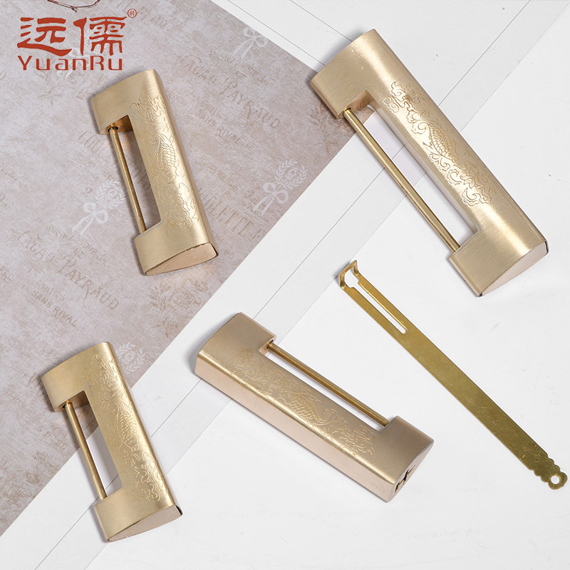 Far-Confucian brass lock Chinese imitation antique small case lock catch key lock old fashioned pure copper ancient wooden case retro horizontal open padlock
