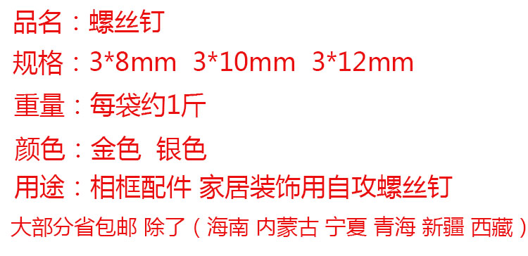 Gold 3*8(about 1000)Gold 3*10(about 850)Gold 3*12(about 650)Silver 3*8(about 1000)Silver 3*10(about 1000)