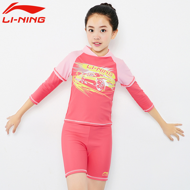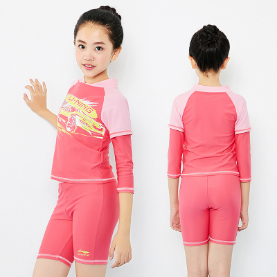 Li Ning children's long sleeve swimsuit quick-drying boy hot spring swimsuit girl Beach surf suit sunscreen two-piece swimsuit