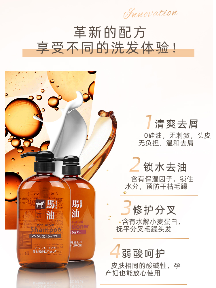 Japan Kumano Oil Horse Oil Anti-dandruff Shampoo Conditioner Set Silicone Oil Free Wash and Protection Combination Male and Female