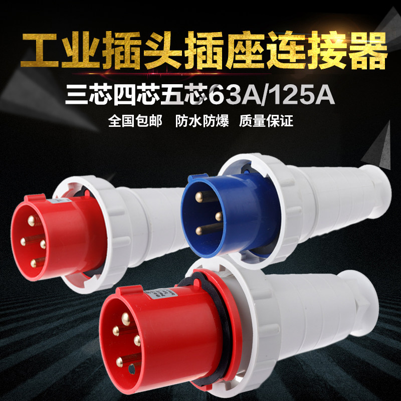 Waterproof industrial plug connector 63A 125A 3 Core 4 hearts 5 holes explosion proof aviation socket male butt IP67