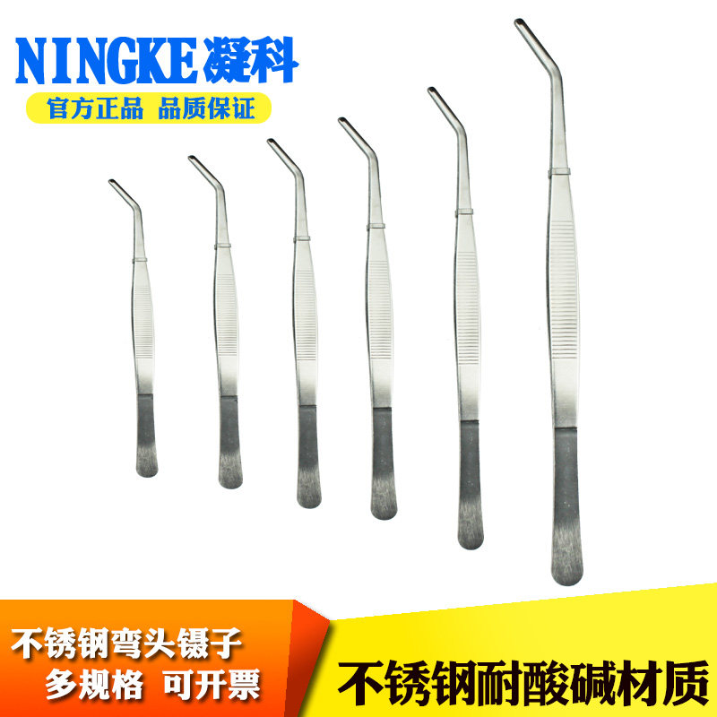 Ningke stainless steel elbow tweezers thickened non-slip round head 10 12 5 14 16 18 20 25 30cm
