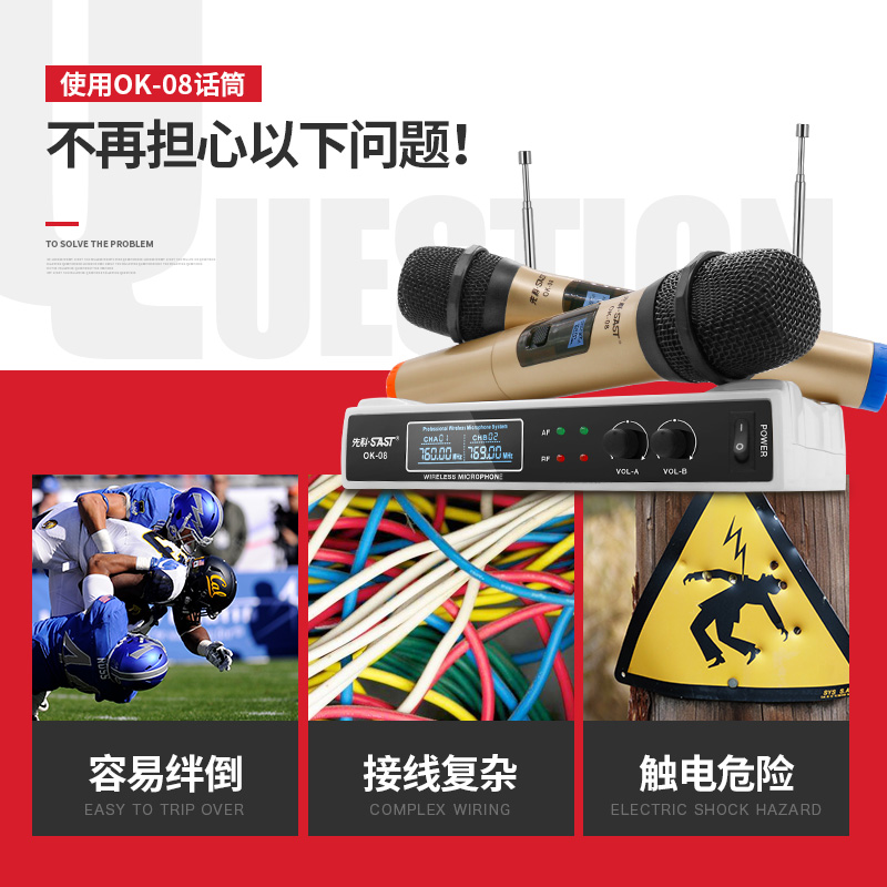 SAST Xianke OK-08 professional wireless microphone one drag two U segment karaoke microphone conference home KTV