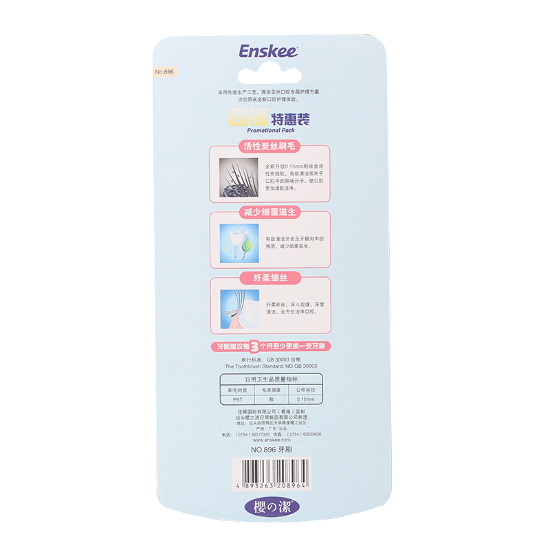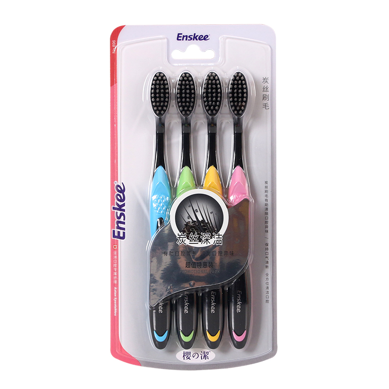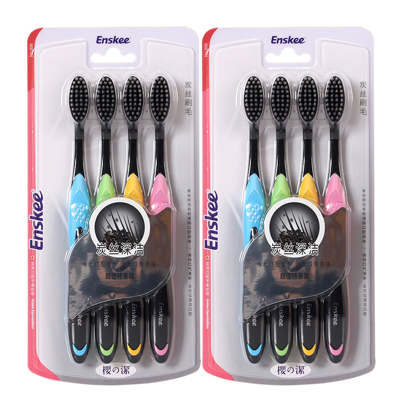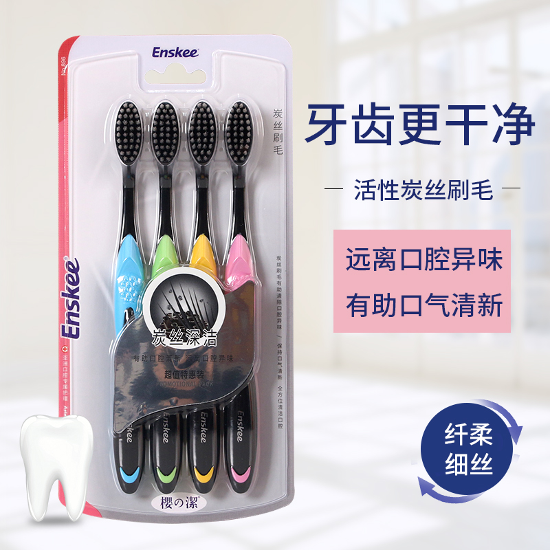 Sakura Zhijie 896 four special toothbrushes to clean the mouth, care for the gums, charcoal silk, soft bristles, family packs