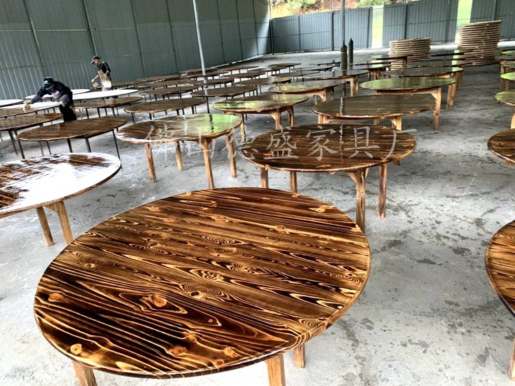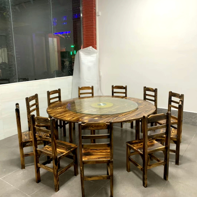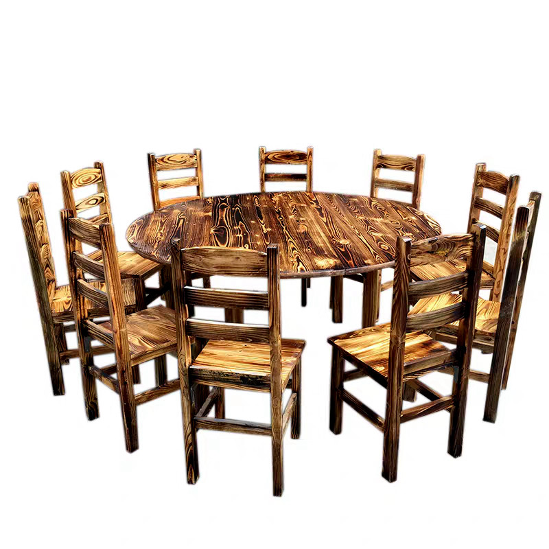 Antique Solid Wood Table Farmstead Charcoal Burning Table Stool Large Platoon Stall Brief Dining Room Barbecue Table Hotel Light Lavish Wood Round Table