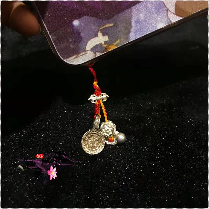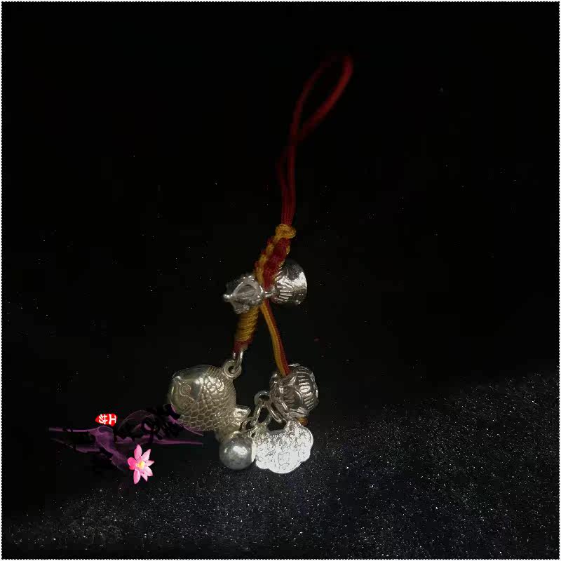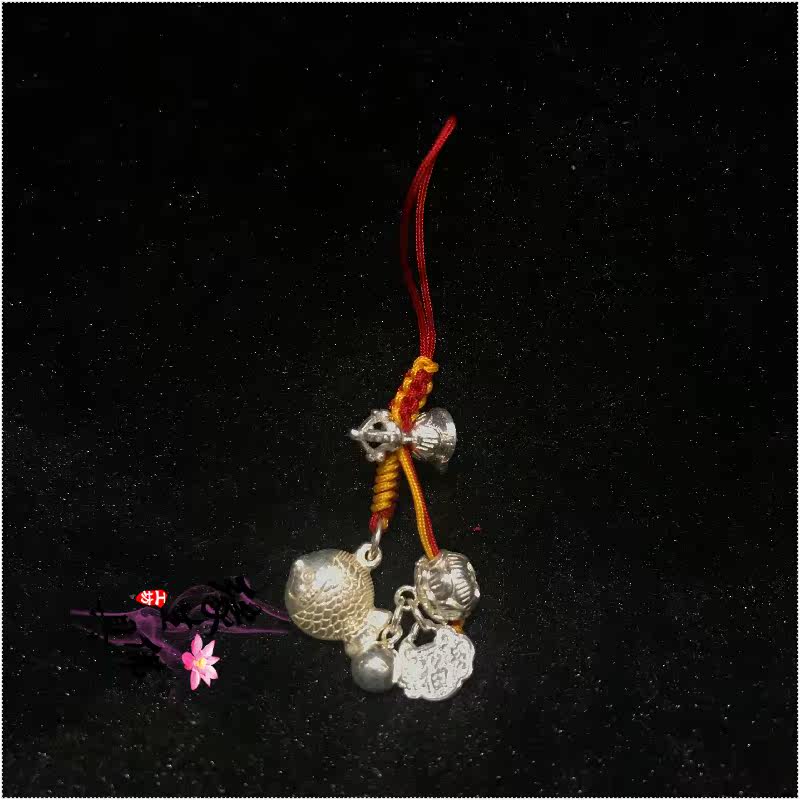 Yuan Sheng Buddha hand-woven sterling silver nine palace Bagua Lotus fish Mobile phone lanyard bag chain keychain pendant