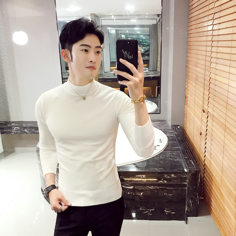 Spring and autumn men's semi-turtleneck long-sleeved sweater Korean slim fit handsome health clothes Knitwear warm base shirt Tide sweater