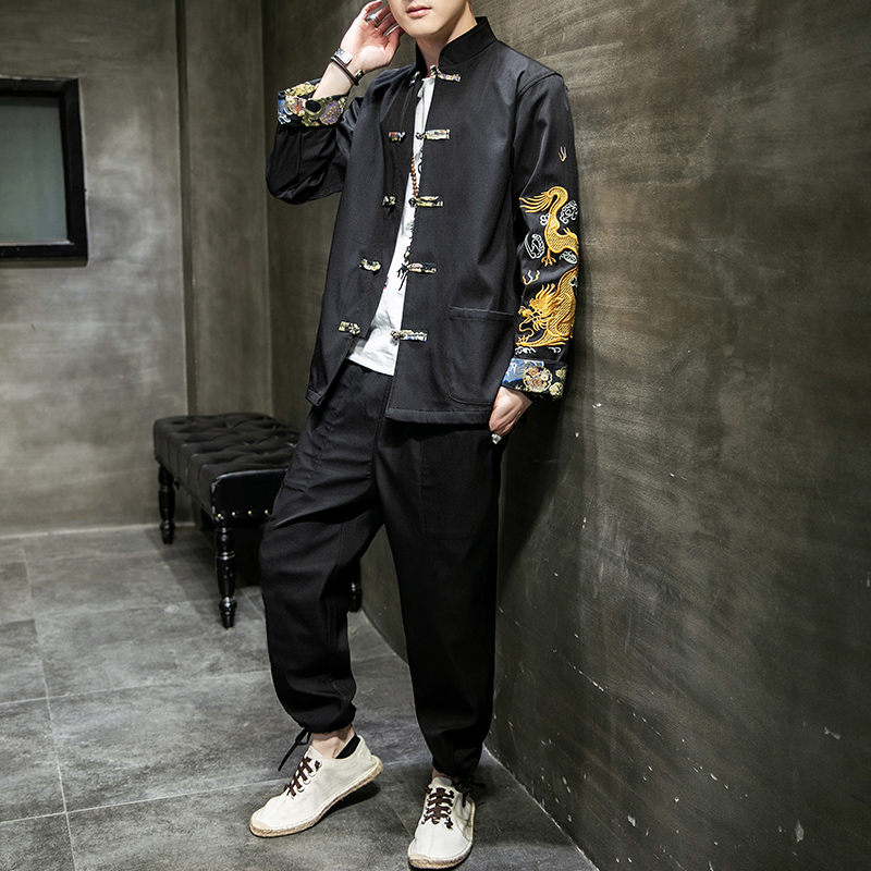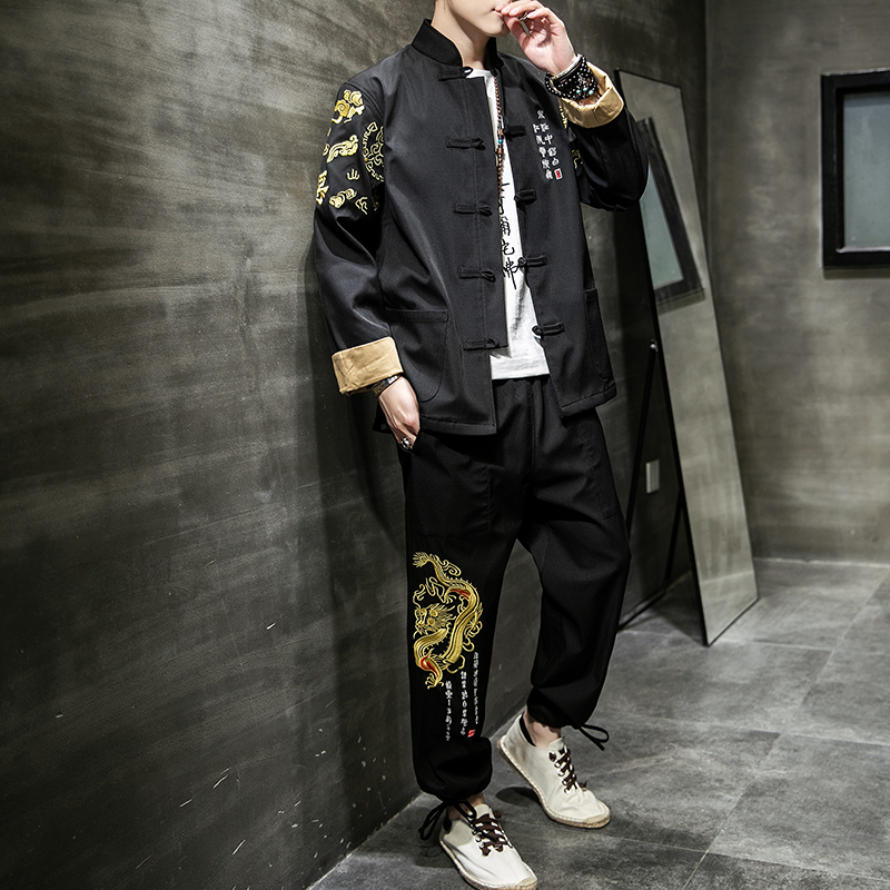 Chinese Tang suit suit Han suit Chinese style men's clothing Lay Shi Ancient style Zen suit Ancient suit Tide brand jacket Retro tunic