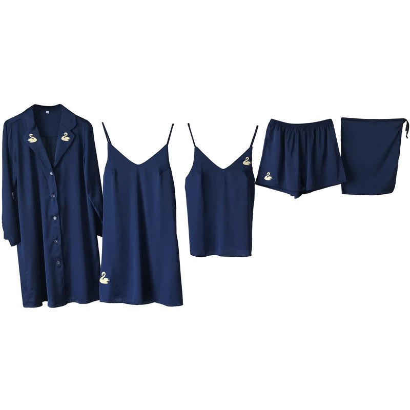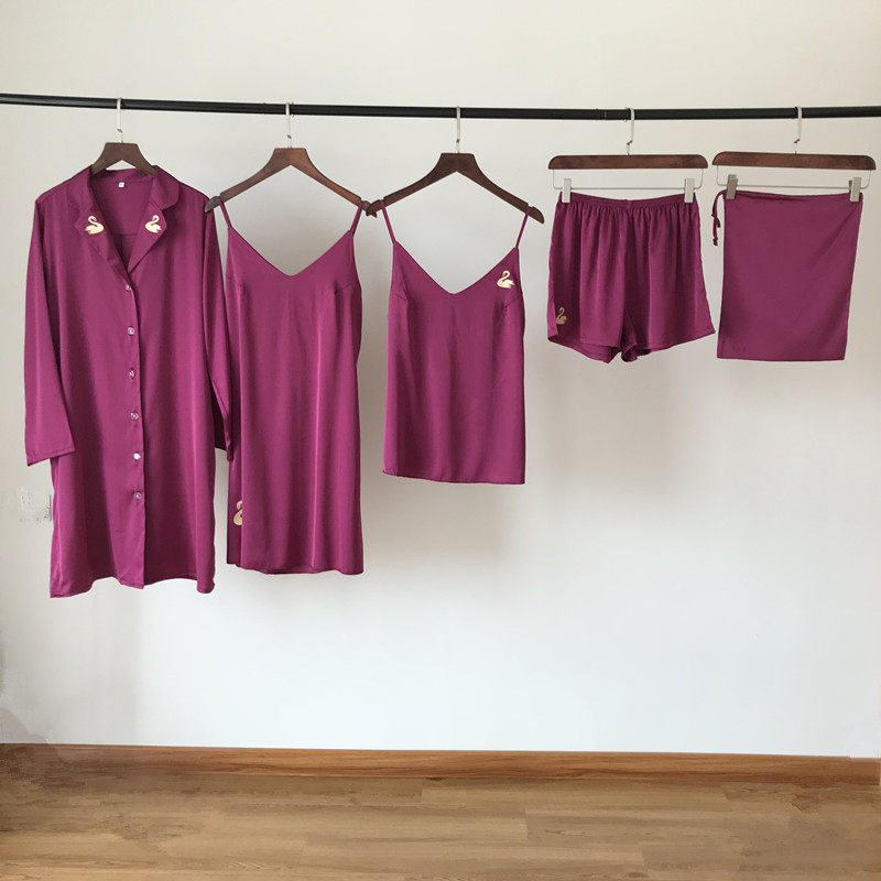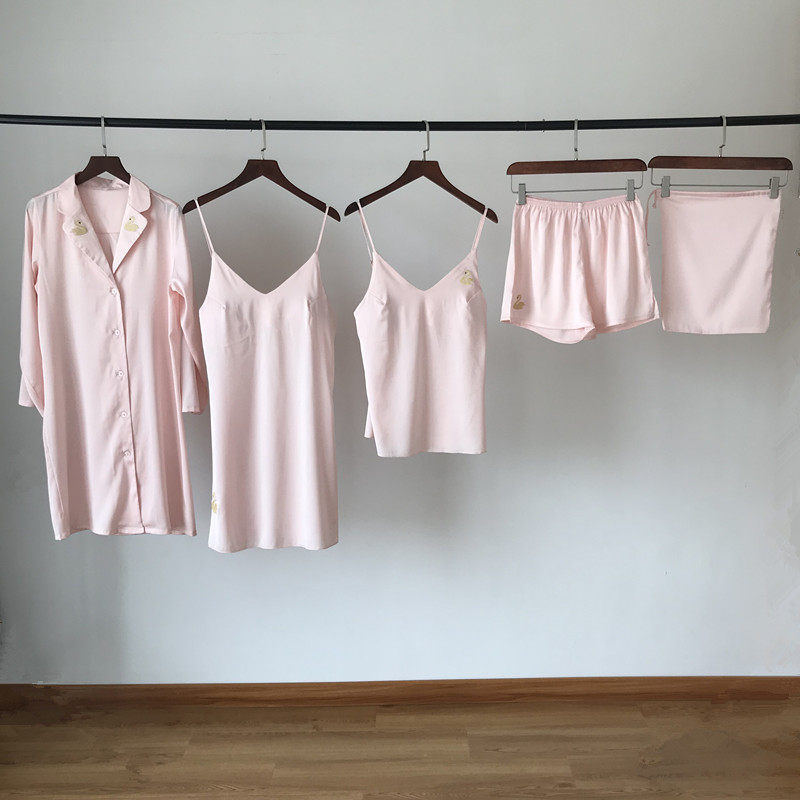 Chest cushion five pieces of Korean version silk pyjamas women's spring and summer season sexy harnesses long robes sleeping gowns suit sleeping skirts