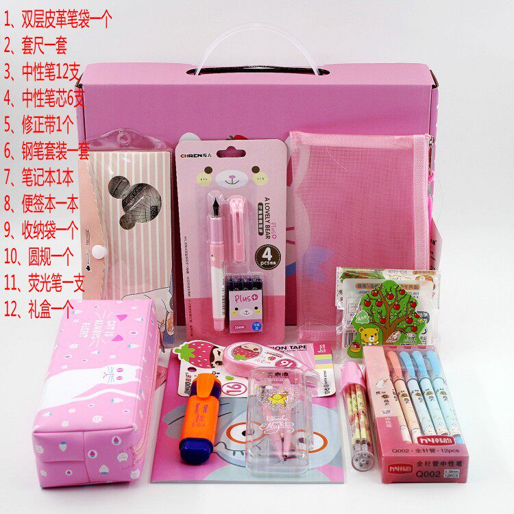 Student equipment stationery set gift box primary and secondary school students school supplies wholesale stationery reward children's birthday gifts