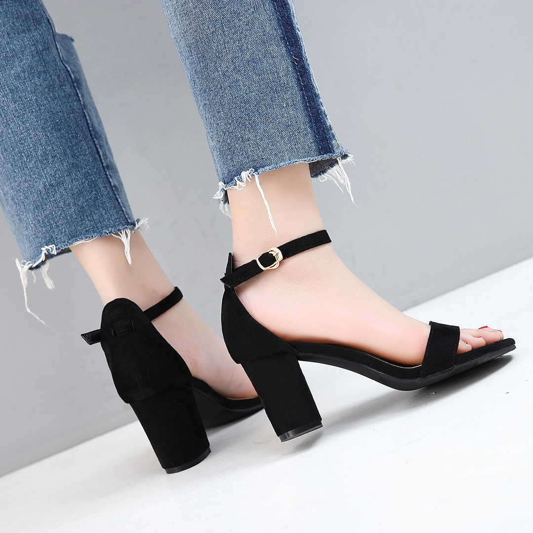 Sandals women 2022 new 100 hitch heel-strap students with internet red fairy wind high heel summer women's shoes