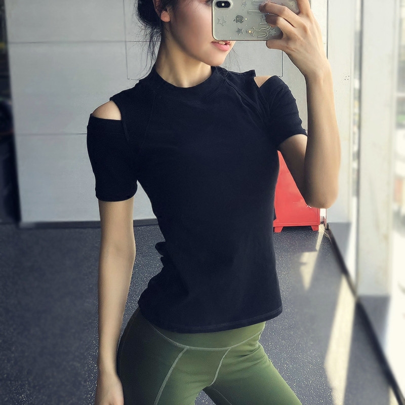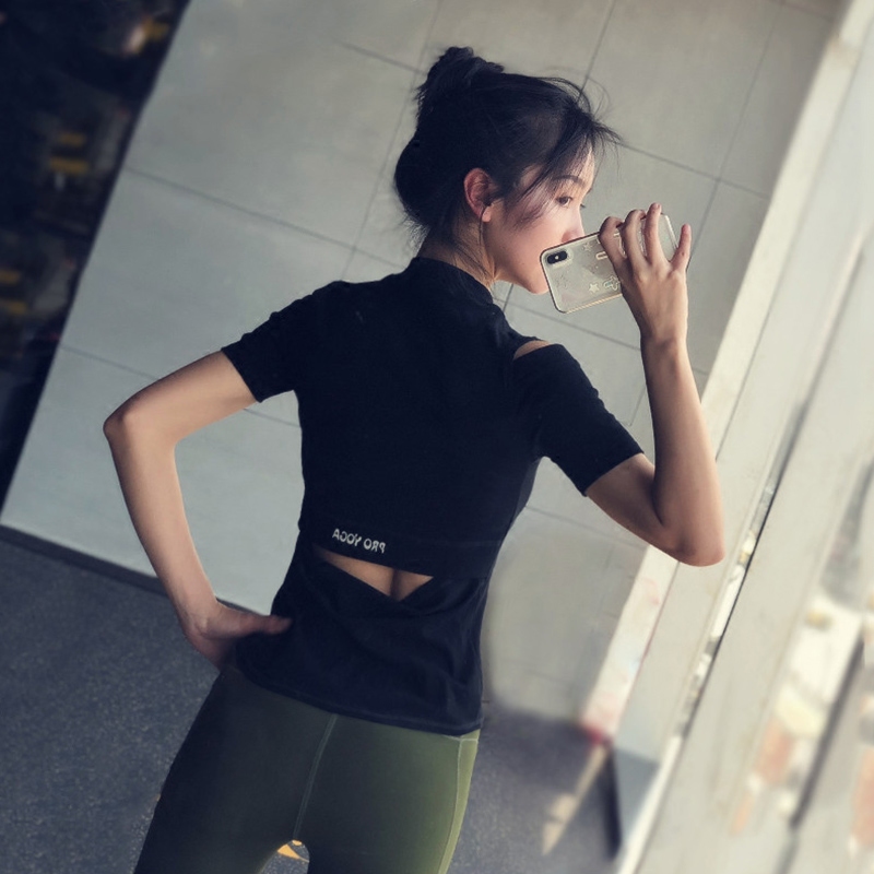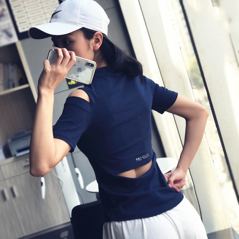 Sexy strapless backless sports t-shirt running fitness short sleeve women's quick-drying top Yoga suit half sleeve stretch thin