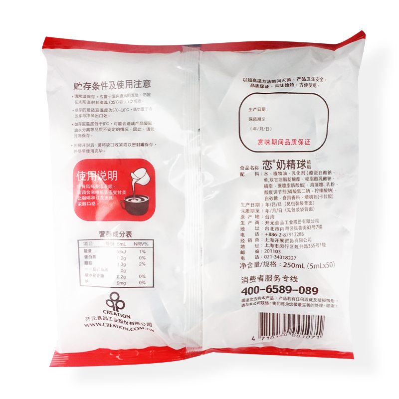 Taiwan love brand partner coffee milk ball coffee milk partner cream ball love creamer ball 5ml*50