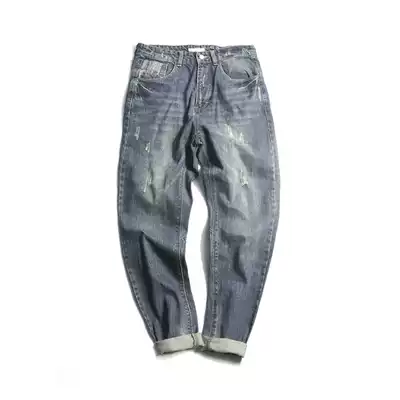 Japanese Street Tide brand washed jeans men's straight tube loose small feet Haren pants pants retro hole pants tide