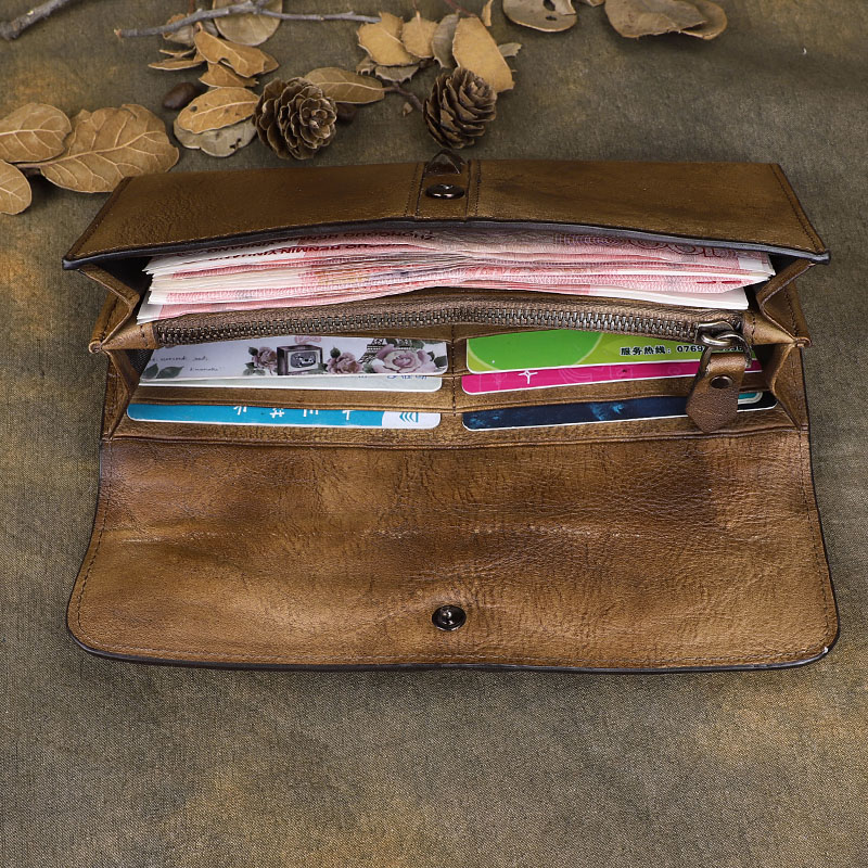Original leather long-form wallet headcoat retro multi-functional rivet handbag for old rubbed fashion handbag