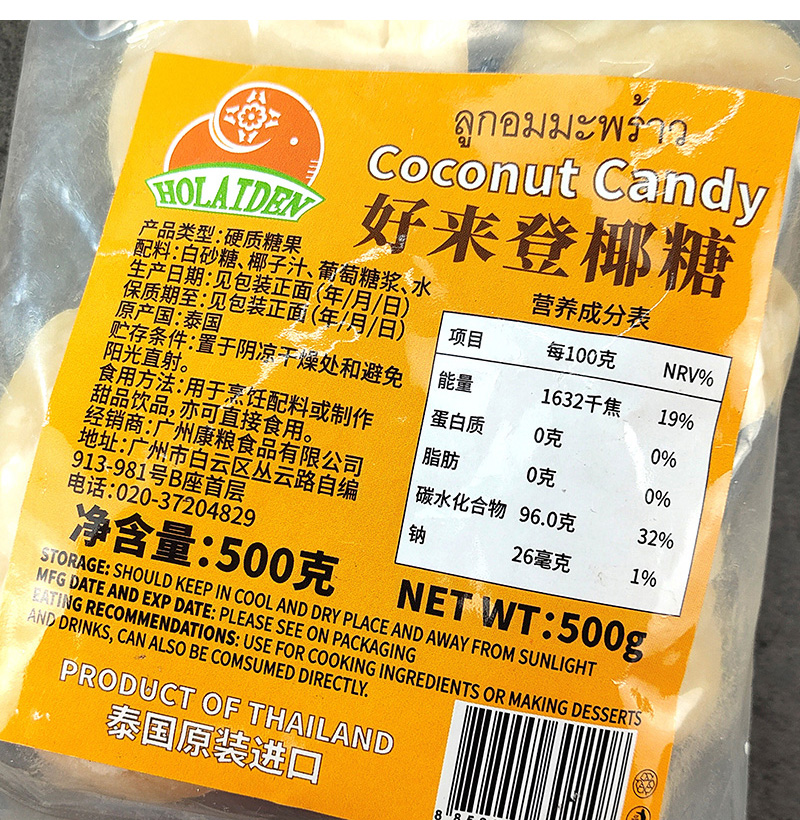 Thai Imported Coconut Sugar Cake Old Trich Coconut Sugar Hard Candy Soft Sugar Sweet raw material (500g) 5 bags