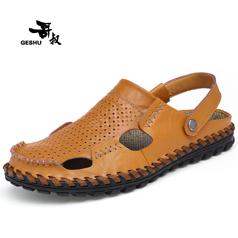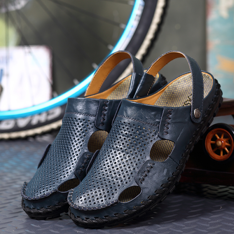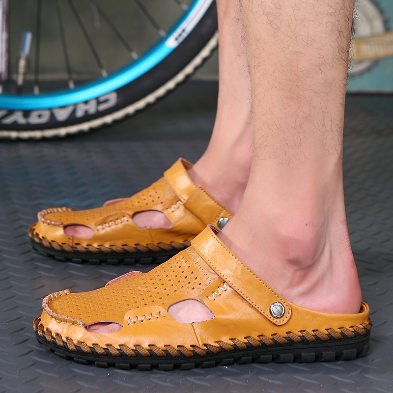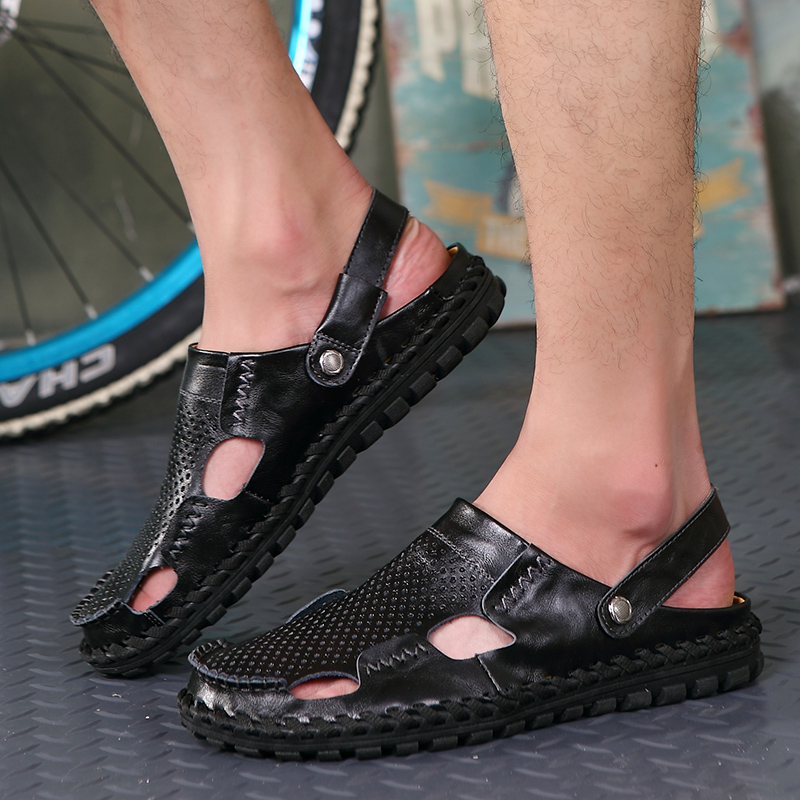 2022 new summer men's sandals men's Korean version large size dual-use sandals leather leather wild beach slippers