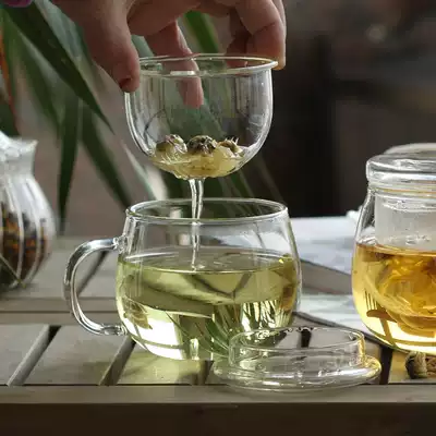 Also set with a lid glass filter Tea Cup heat-resistant transparent flower tea girl water cup office