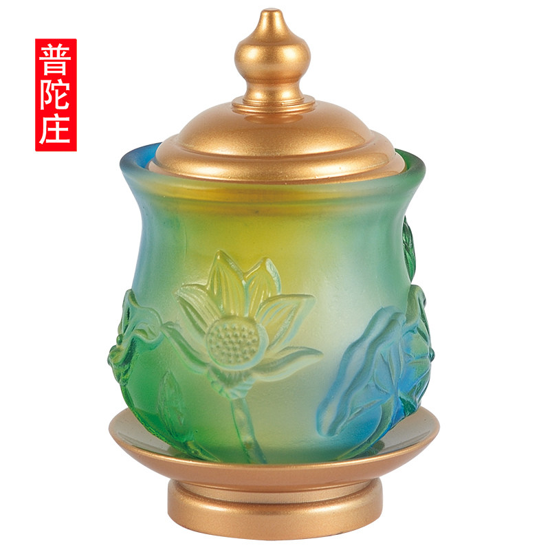 Buddha glaze relief lotus holy water cup water purification tribute cup water cup for Buddha front cup Buddha temple