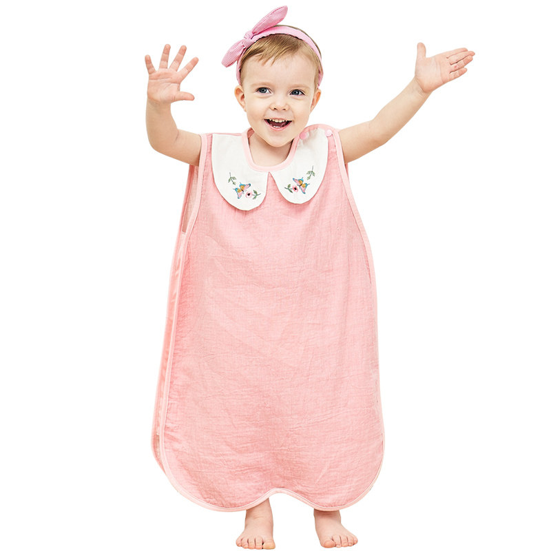Longzhihan baby sleeping bag Children's thin split leg mushroom anti-kick quilt pure cotton baby one-piece vest gauze sleeping bag