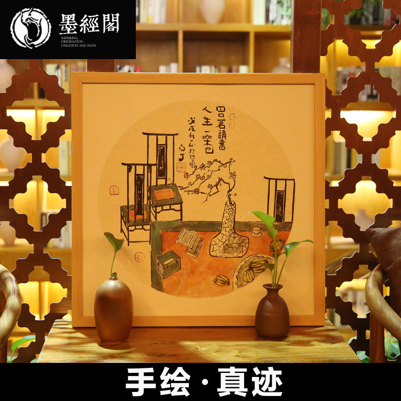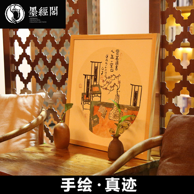 China Wind Zen Hang Painting New Chinese Style Entrance Xuanguan Decorative Painting Modern Dining Hall Tea Room Bullpen with Small Pink Paints