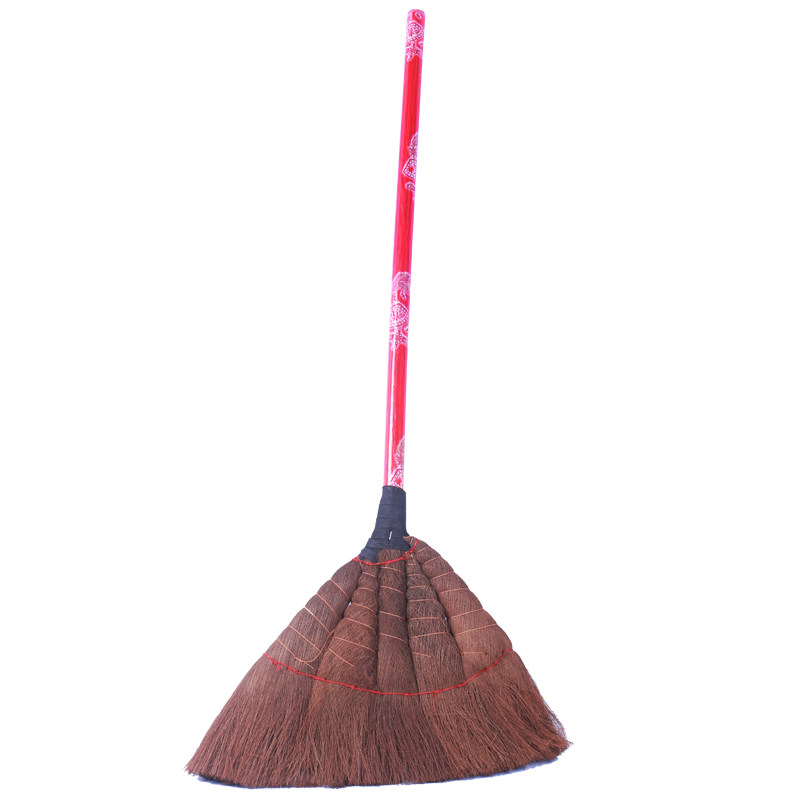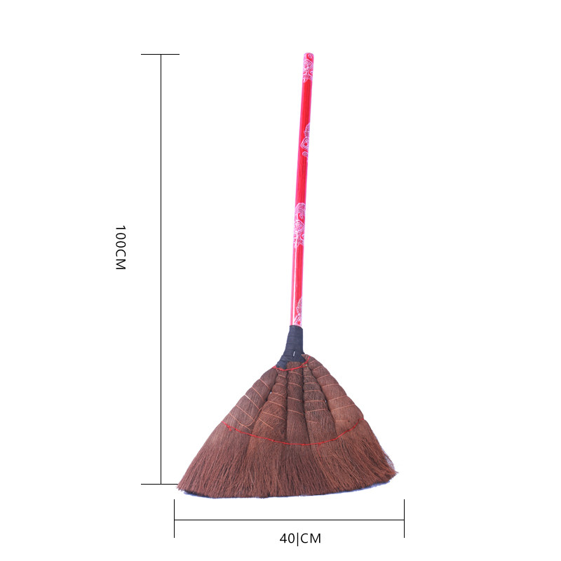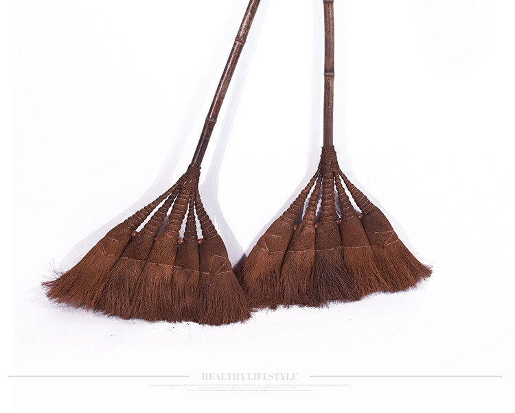 Hand-tied natural solid wood handle large thick brown-haired old-fashioned broom broom Home quality broom