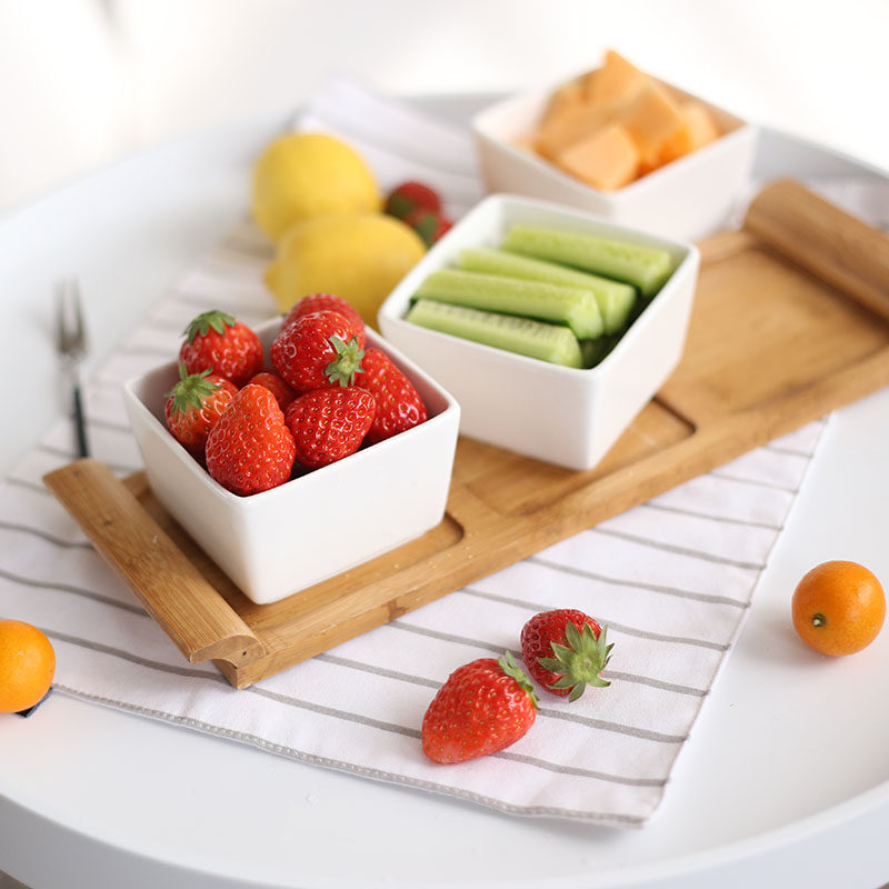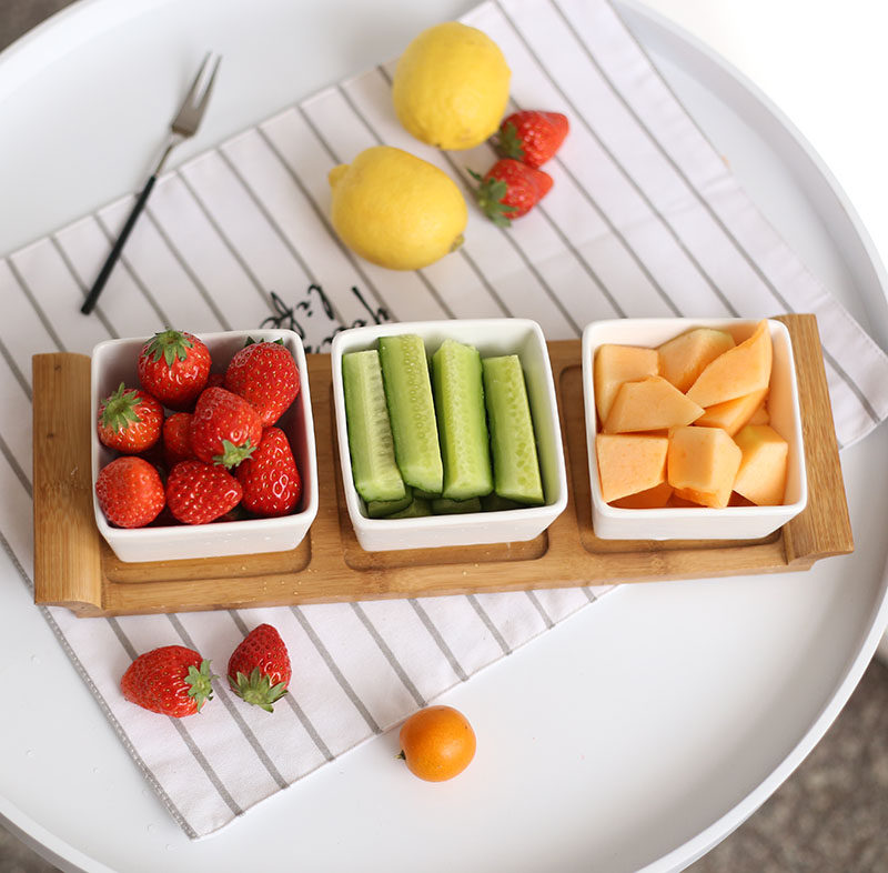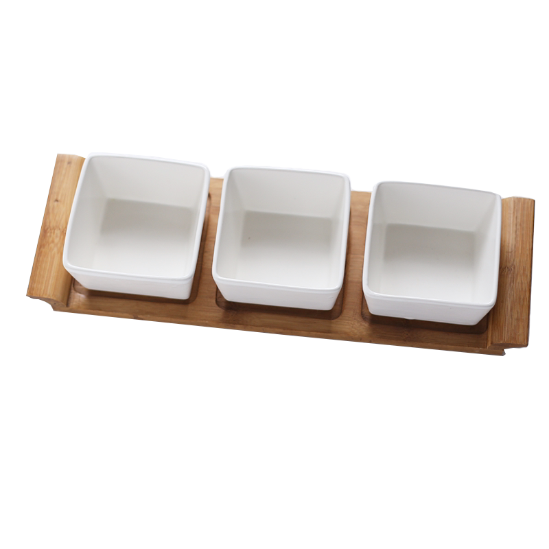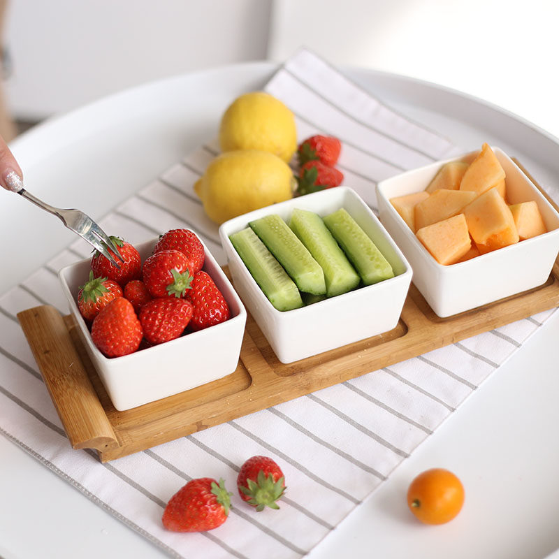 Japanese-style ceramic 3-grid square dish with tray set ceramic small square bowl cold dish dish dessert fruit plate