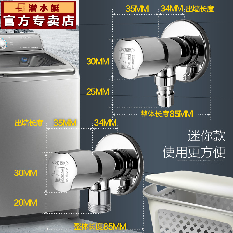 Submarine faucet Fine copper submarine triangle valve Mini washing machine faucet 4 6-point angle valve faucet
