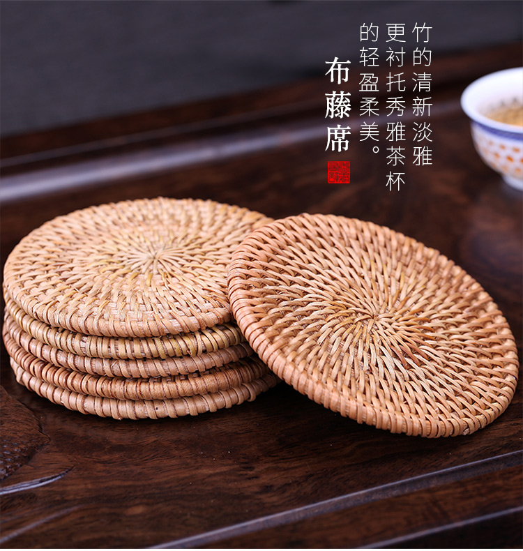 Handmade cup holder tea tray coaster leaf bamboo rattan tea mat tea ceremony accessories coaster
