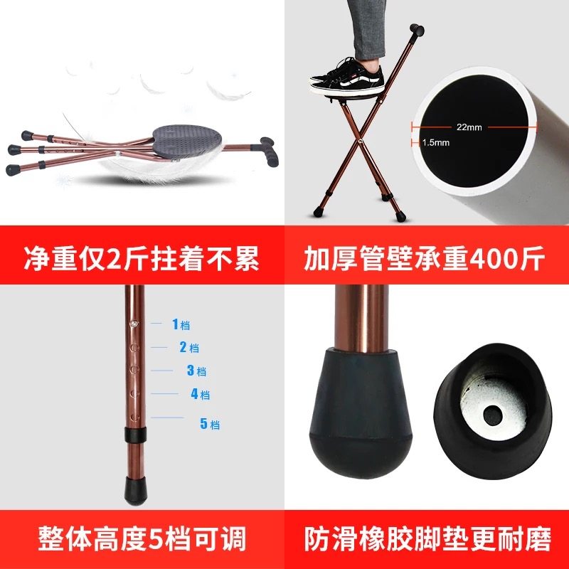 Crutch stool chair Crutch old man cane four feet with lamp Old man with seat foldable multi-purpose three-legged stool